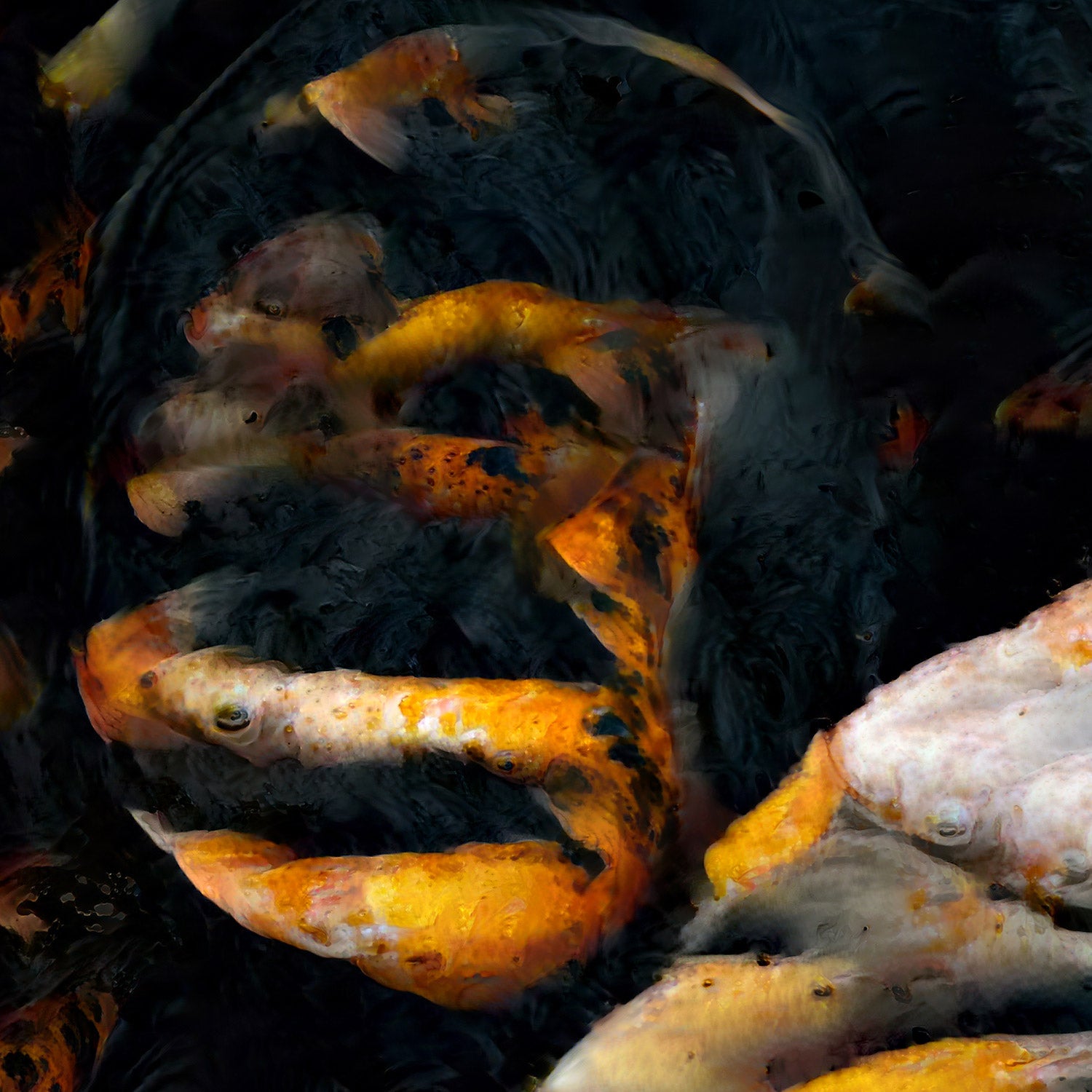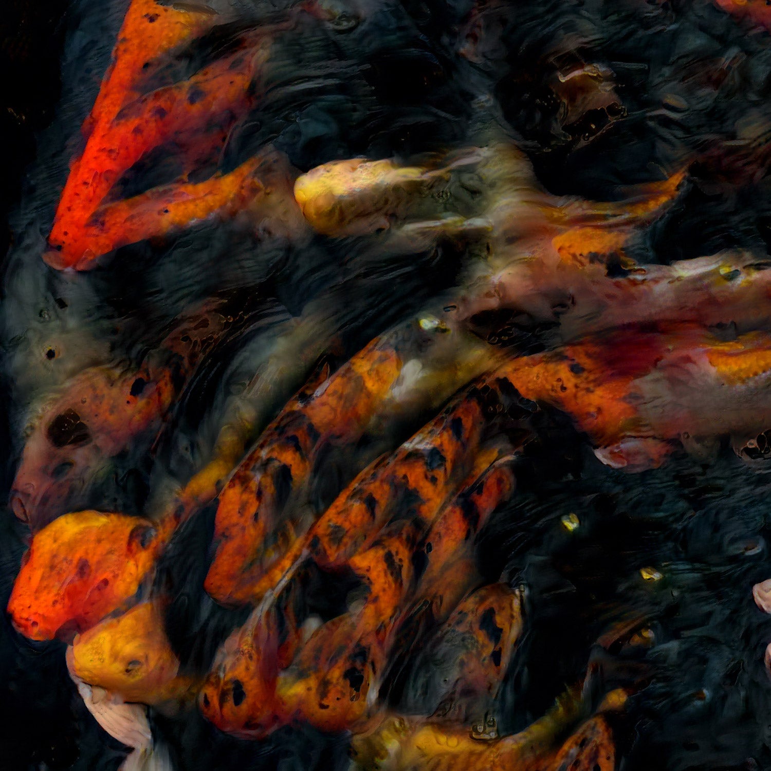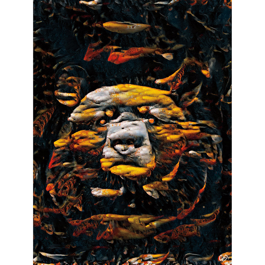 This piece is created at the forefront of fine art printing technology, resulting in a complete and seamless visual experience. Combining this impeccable visual quality with the effect of looking at the art through glass really enhances the illusion of the piece, as if there really were a pond of fish on your wall, just beneath the surface of crystal clear water.