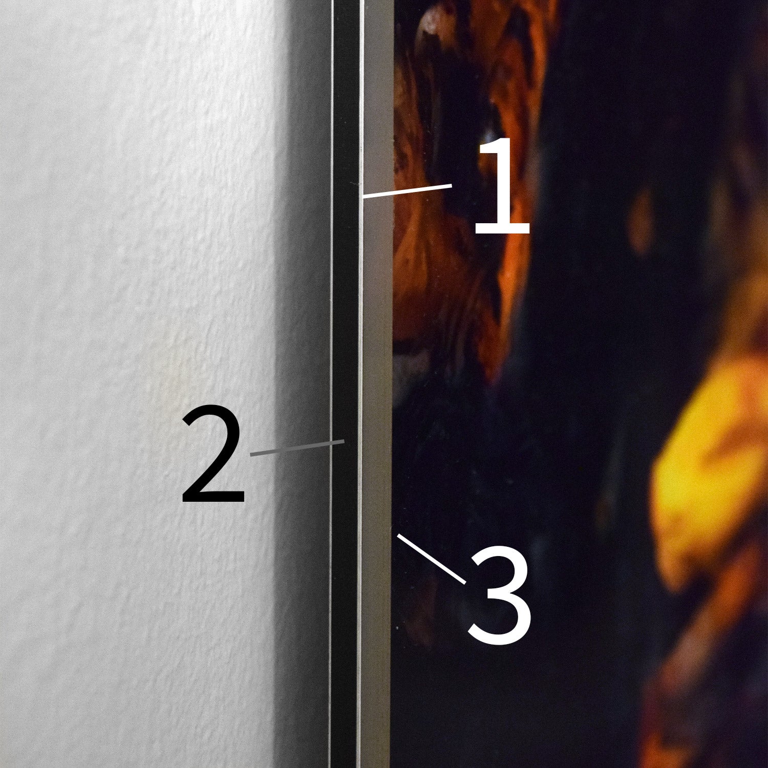 This piece has a dreamlike quality to it which I really enjoy. It's bold, unique and will get people talking. The art is printed on an ultra-HD Fuji Crystal Professional Archive Maxima Paper (1) with an aluminum Dibond substrate (2) and face mounted to a piece of 1/4" shatterproof acrylic glass (3). For easy mounting, there are gallery quality aluminum rails attached to the back so your art will arrive ready to hang. It is 40" x 30" wide and sits out from the wall by about 0.75" (or 101.6cm x 76.2cm x 1.9cm).