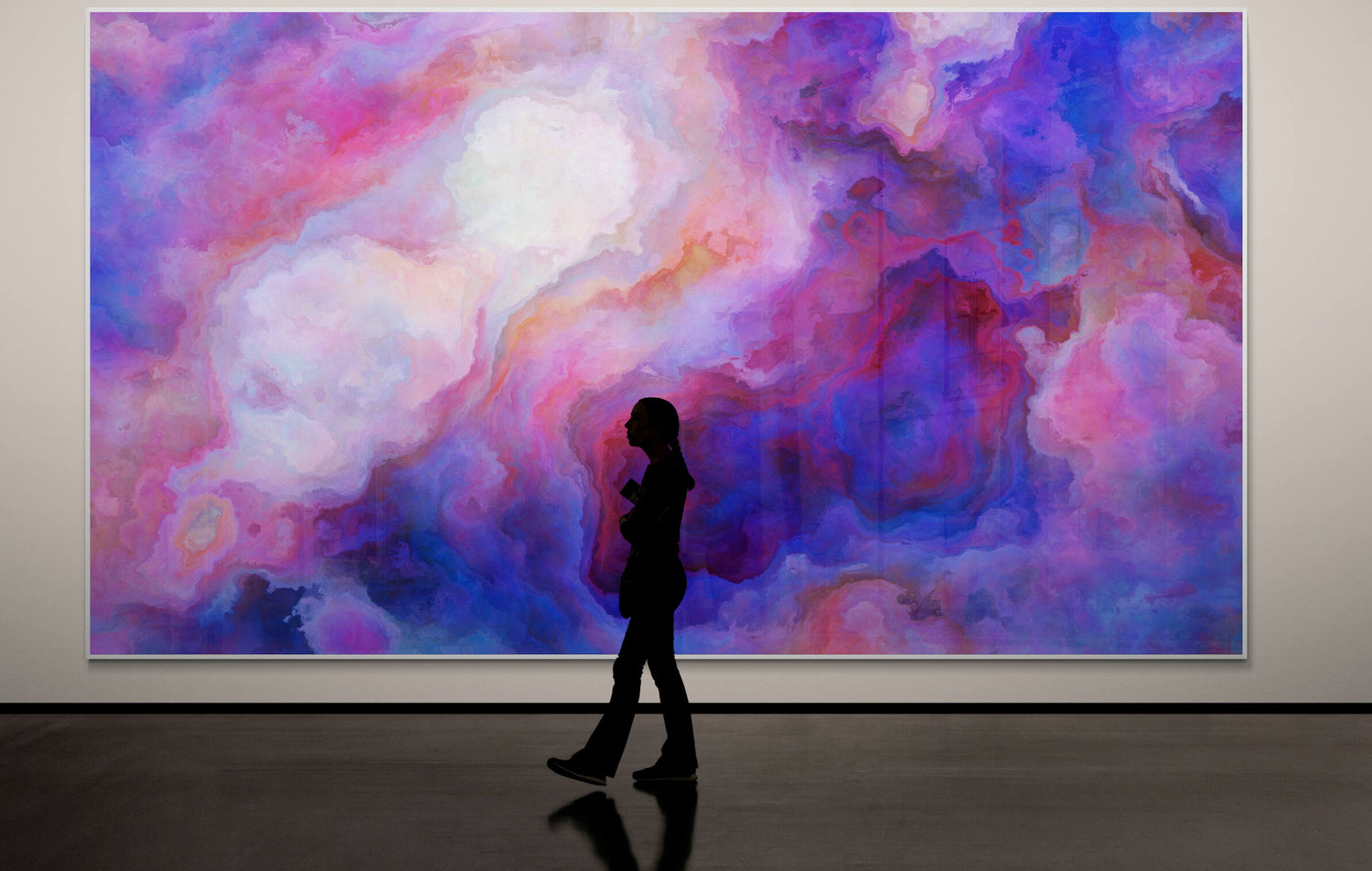 This is part of my generative series titled Chromasoma. From the greek khrōma meaning ‘color’ + sōma meaning ‘body’. To create this series, I developed a generative algorithm that allows me to breed art at massive scales. The colors and textures are the result of a massive mathematical function with parameters that are linked to the "DNA" of each piece. By breeding together different art pieces using a human-machine interface and an AI assistant that I developed, I am able to explore the incredible depth of possibilities and identify potential solution spaces that have favorable characteristics, like the piece you see here. Because the art is analytically defined by a math function it can be generated at any size and scale.