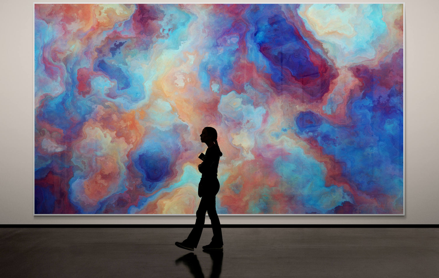 This is part of my generative series titled Chromasoma. From the greek khrōma meaning ‘color’ + sōma meaning ‘body’. To create this series, I developed a generative algorithm that allows me to breed art at massive scales. The colors and textures are the result of a massive mathematical function with parameters that are linked to the "DNA" of each piece. By breeding together different art pieces using a human-machine interface and an AI assistant that I developed, I am able to explore the incredible depth of possibilities and identify potential solution spaces that have favorable characteristics, like the piece you see here. Because the art is analytically defined by a math function it can be generated at any size and scale.