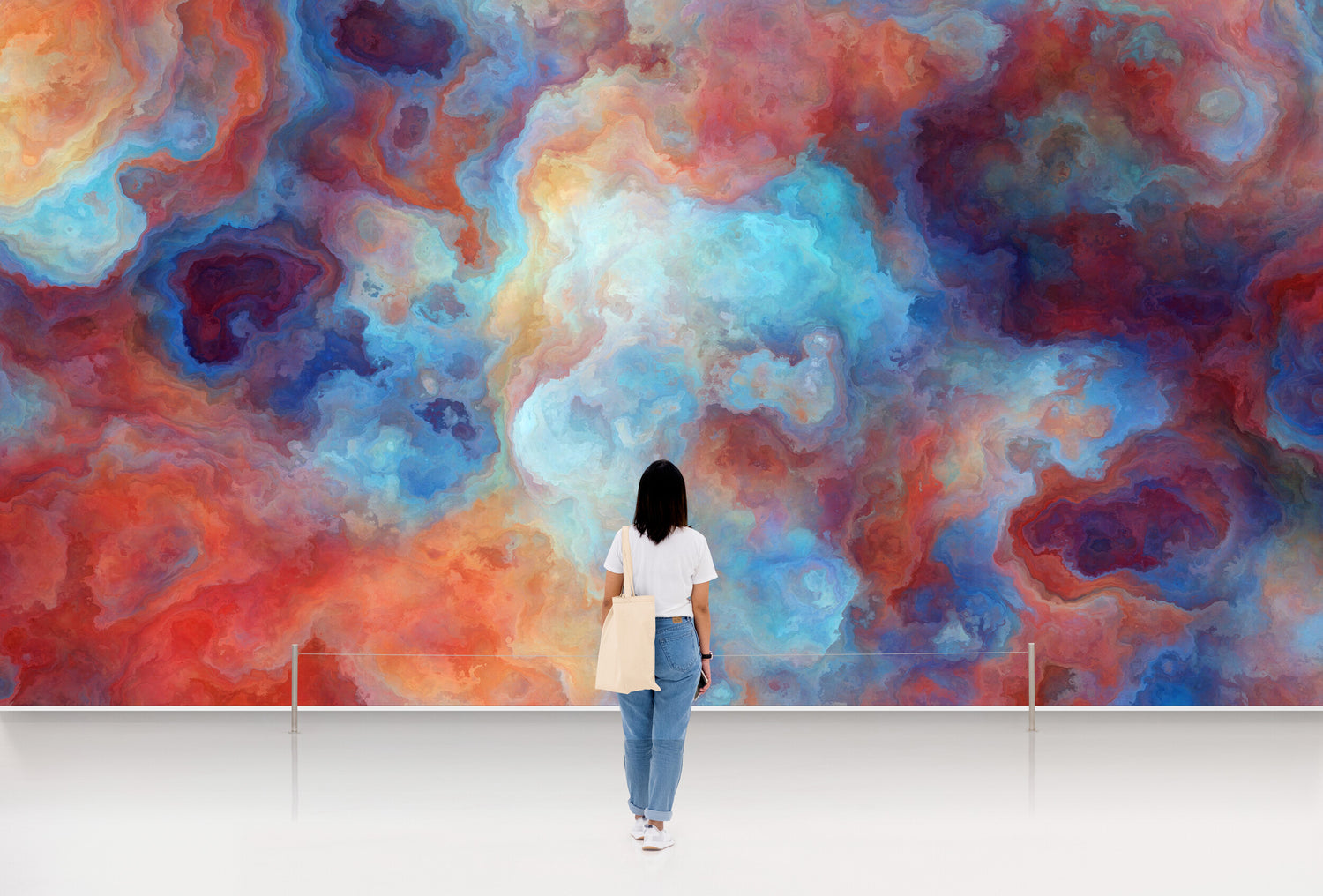 This is part of my generative series titled Chromasoma. From the greek khrōma meaning ‘color’ + sōma meaning ‘body’. To create this series, I developed a generative algorithm that allows me to breed art at massive scales. The colors and textures are the result of a massive mathematical function with parameters that are linked to the "DNA" of each piece. By breeding together different art pieces using a human-machine interface and an AI assistant that I developed, I am able to explore the incredible depth of possibilities and identify potential solution spaces that have favorable characteristics, like the piece you see here. Because the art is analytically defined by a math function it can be generated at any size and scale.