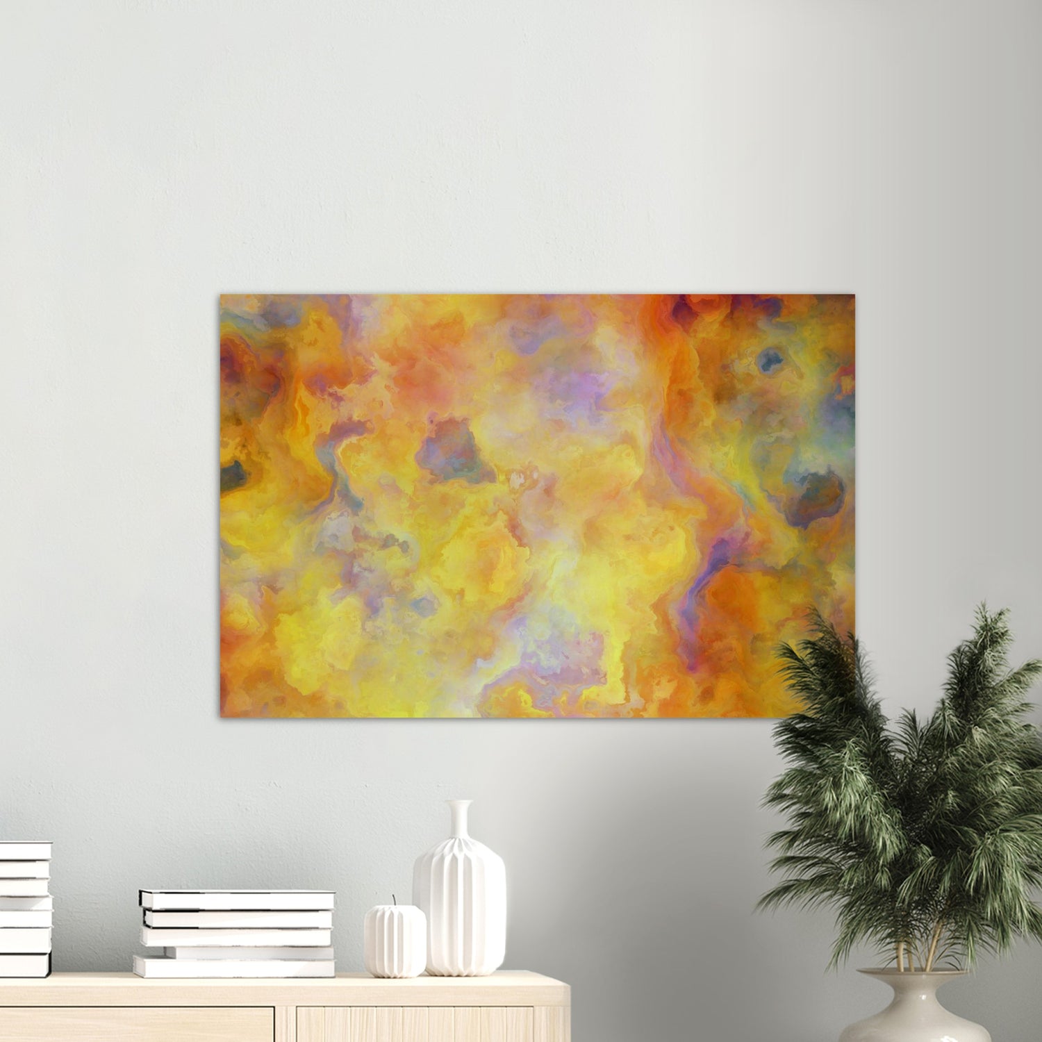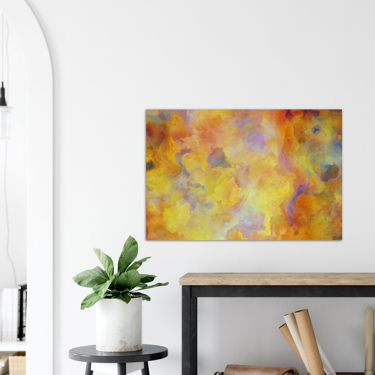 A warm yellow piece with some complementing shades of purple. Based on my fine art piece, where you can commission custom art in this style printed on metal or under glass here.