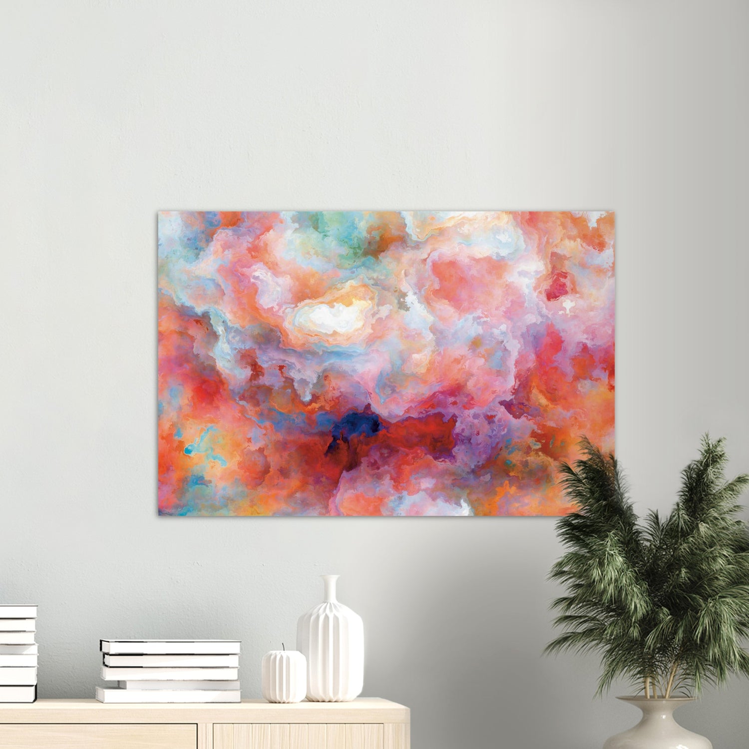 A wonderfully warm piece with comforting hues. The more muted pastels in this piece evoke a calm but sustained energy. Based on my fine art piece, where you can commission custom art in this style printed on metal and glass here.